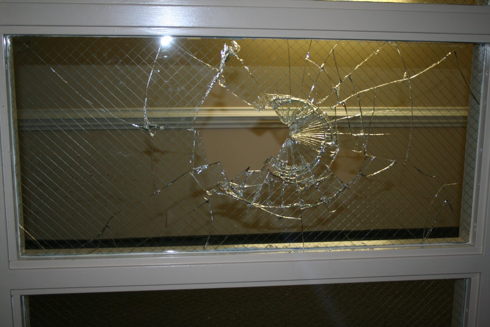 In the past week I have had two memorable experiences. Last Thursday I was sitting in my room when I heard a large boom coming from the hallway on my floor. It was 2am and I was getting ready to make a round at 2:30am but expereince let me know exactly what that cracking boom was. I knew it was either somebody kicking out the glass in the elevator lobby or somebody taking out the light sconces. I ran out into the hallway to try to get a look at the guy, but found something totally different. Yes – the metal reinforced glass was smashed, but I saw ALOT of blood. I don’t mean a little blood. I mean it looked like something out of a Saw gore movie. I saw the large trail of blood led to the elevator. I used a Discovery Church pen to press the elevator button, because it (and the wall) were pretty covered. The elevator door immediately opened to reveal a severely injured drunk male. He had punched out the glass with his bare fist! He was mumbling something about how he was mad at his girlfriend, but I didn’t really care considering how much blood he had lost in less then a minute. So I went in to crisis mode and made sure the poor kid was off to the hospital… well after much debate with his drunk female friends who had come to “comfort” him. They were so out of it that they thought he was fine. Anyway after surgery to repair tendons and arteries and remove glass… he should be ok after some physical therapy. I’m just glad I was there considering his lady friends though he was ok.