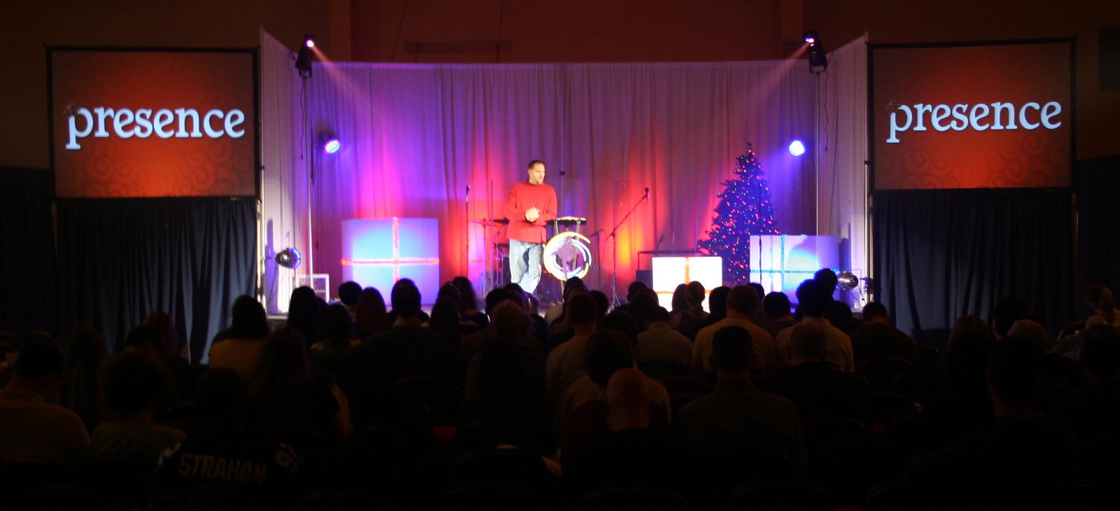 Last Sunday I have to say the production team at Discovery did an amazing job. We went from cabbages to christmas in a week. We did introduce several new elements to the production side of Discovery this week. We have added some new “moving” or intelligent lights. They are also being enhanced with a new haze effect. The haze effect allows the lights to be seen while they are moving. We also had some HUGE presents on stage (courtesy of Claude) that were lit up by red and blue rope light.